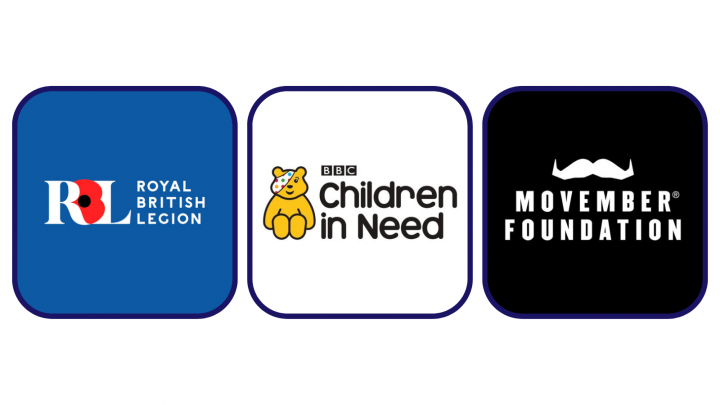 🧔 Movember – Funding men’s health initiatives focused on mental health, suicide prevention, and cancer research.